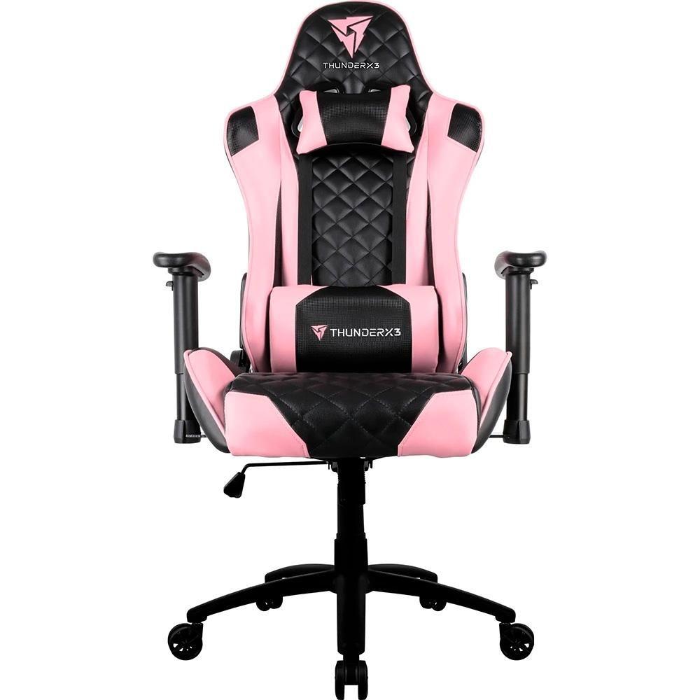 Cadeira Gamer Thunderx3 TGC12 Profissional, Até 120kg, Com Almofadas, Reclinável, Descanso de Braço 2D, Rosa e Preto - 78203