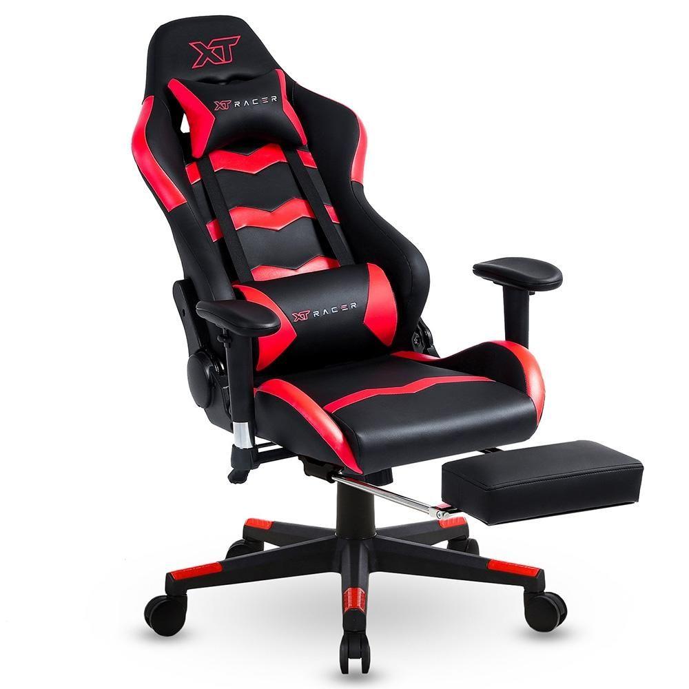 Cadeira Gamer XT Racer Speed Series, Até 120kg, Com Almofadas e Apoio de Pés, Reclinável, Descanso de Braço 2D, Preto e Vermelho - XTS180
